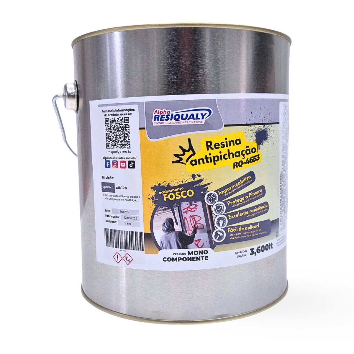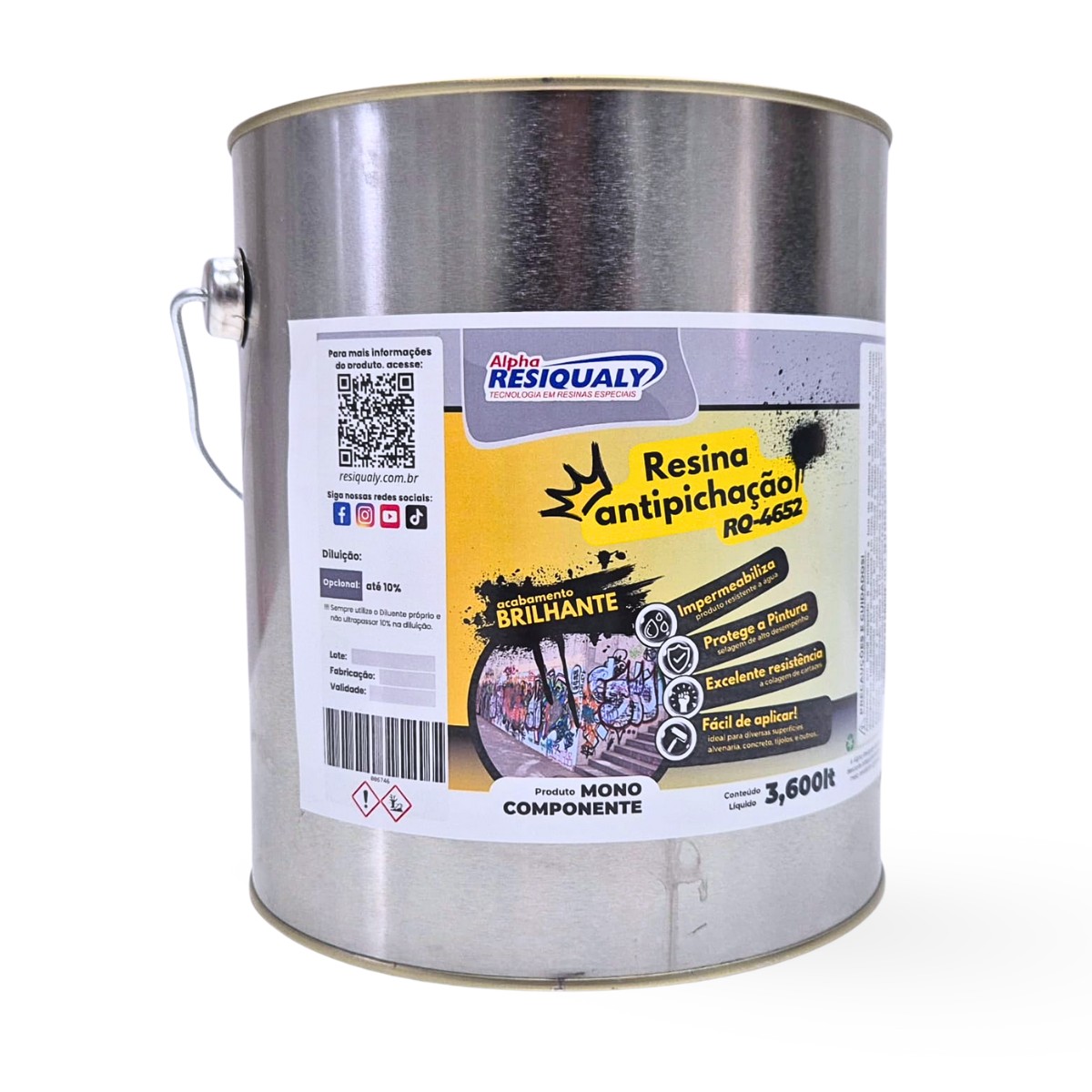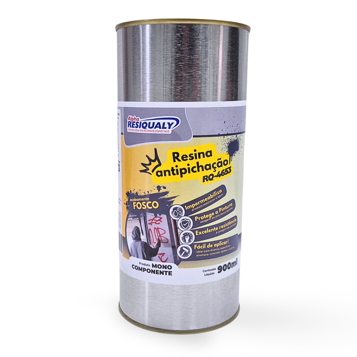 Resina transparente para impermeabilização e selagem de alto desempenho destinado para o uso em superfícies de alvenaria, concreto e tijolos devidamente preparados. Ideal para diversos tipos de construções que desejam a aplicação de um material que facilite a remoção de pichações como fachadas e muros de estabelecimentos comerciais, residencias, além de pontes, viadutos, estações de trem, metro e monumentos. Material possui excelente resistência contra pichações ao qual com o uso de lavadora de alta pressão a pichação pode ser removida, além de alta resistência conta a colagem de cartazes.