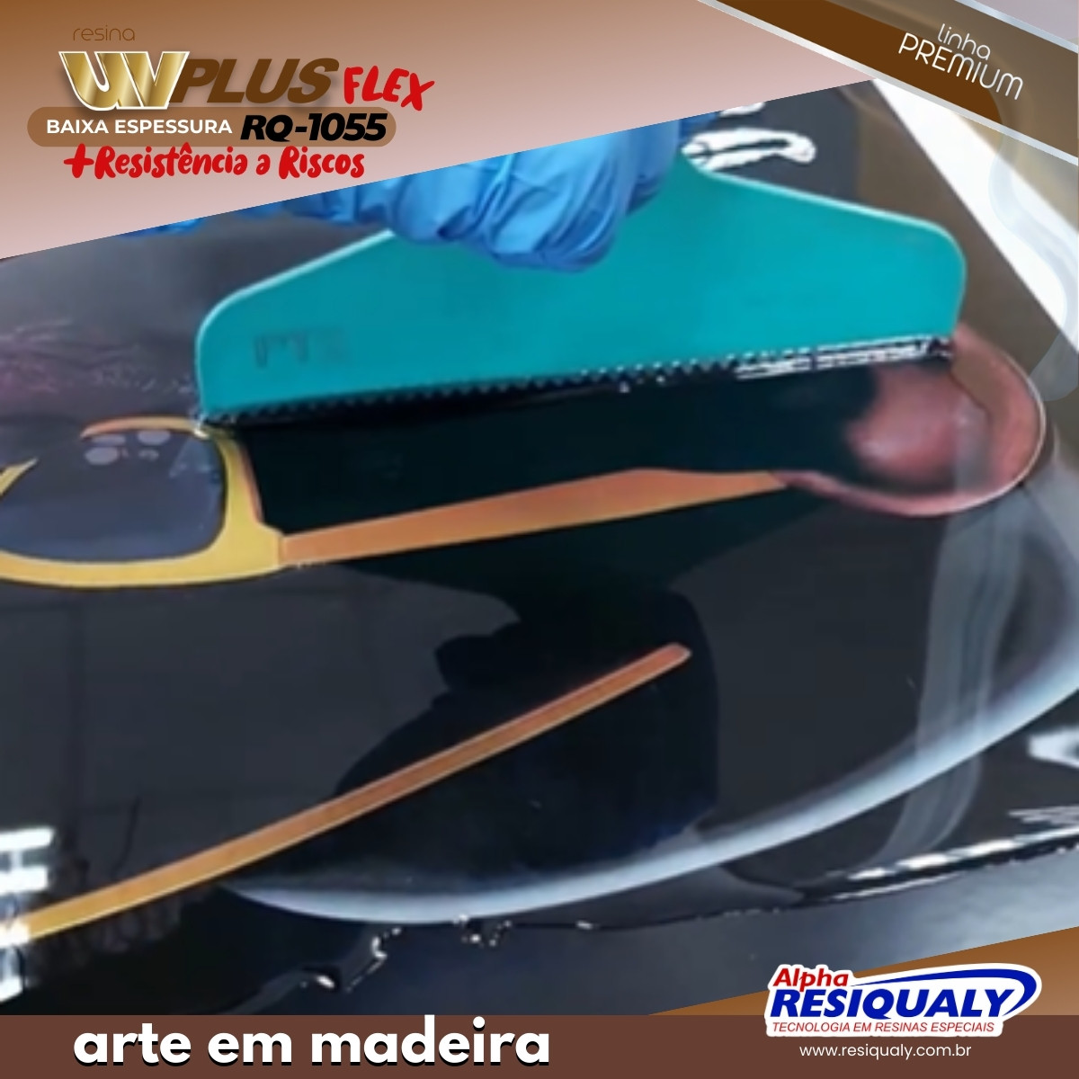 Resina de acabamento flexílvel, brilhante e alta resistência a risco com ótima resistência aos raios UV's. Indicada para aplicação em finas camadas de até 3mm espessura. Pode ser aplicada totalmente transparente ou misturado com Corantes para Resina.