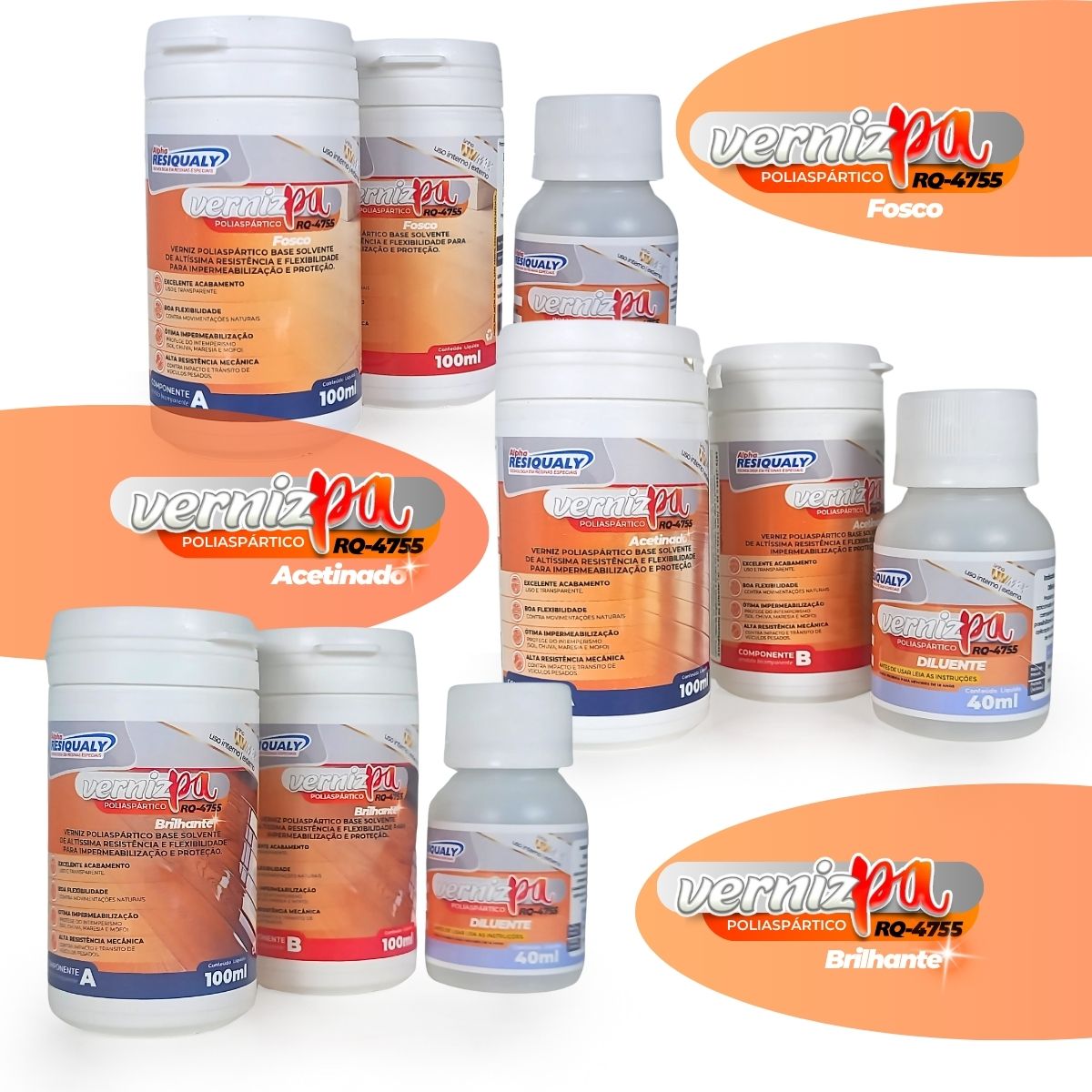 Verniz poliaspártico transparente de alta resistência, bicomponente e à base de solvente. Ideal para proteção e acabamento em superfícies diversas, disponível nas versões brilhante, acetinado e fosco. Proporciona excelente durabilidade, resistência química e mecânica, além de ótimo rendimento. Pode ser aplicado com rolo, pincel ou pistola, garantindo acabamento uniforme e sofisticado. Rendimento aproximado: até 15m²/L por demão em superfícies lisas e 10m²/L em superfícies porosas, variando conforme a técnica e a espessura da aplicação.