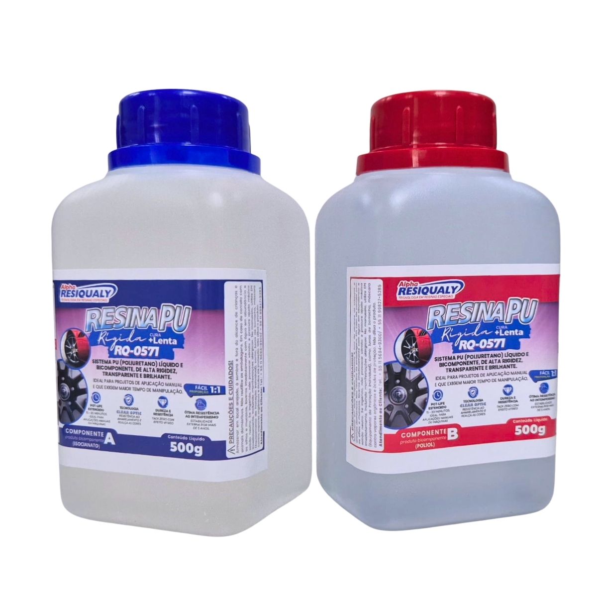 Produto líquido, transparente, bicomponente, de fácil proporção de uso que após curado proporciona uma fina camada rígida e brilhante com resistência ao amarelecimento e sem tack, além da resistência mecânica, química e térmica. Indicado principalmente para aplicação em etiquetas resinadas, emblemas automotivos, adesivos da linha branca, pastilhas resinadas, batentes, entre outros. Pode ser aplicado de forma manual com o auxílio do Tratado de Resina PU RQM-200 ou com Equipamentos de Tratamento e Aplicação como a Color-Dec 110M. Recomendamos que a cura da Resina PU seja realizada em equipamentos térmicos (Mesa Térmica Digital RQM-700 ou Estufa Digital RQM-720).
